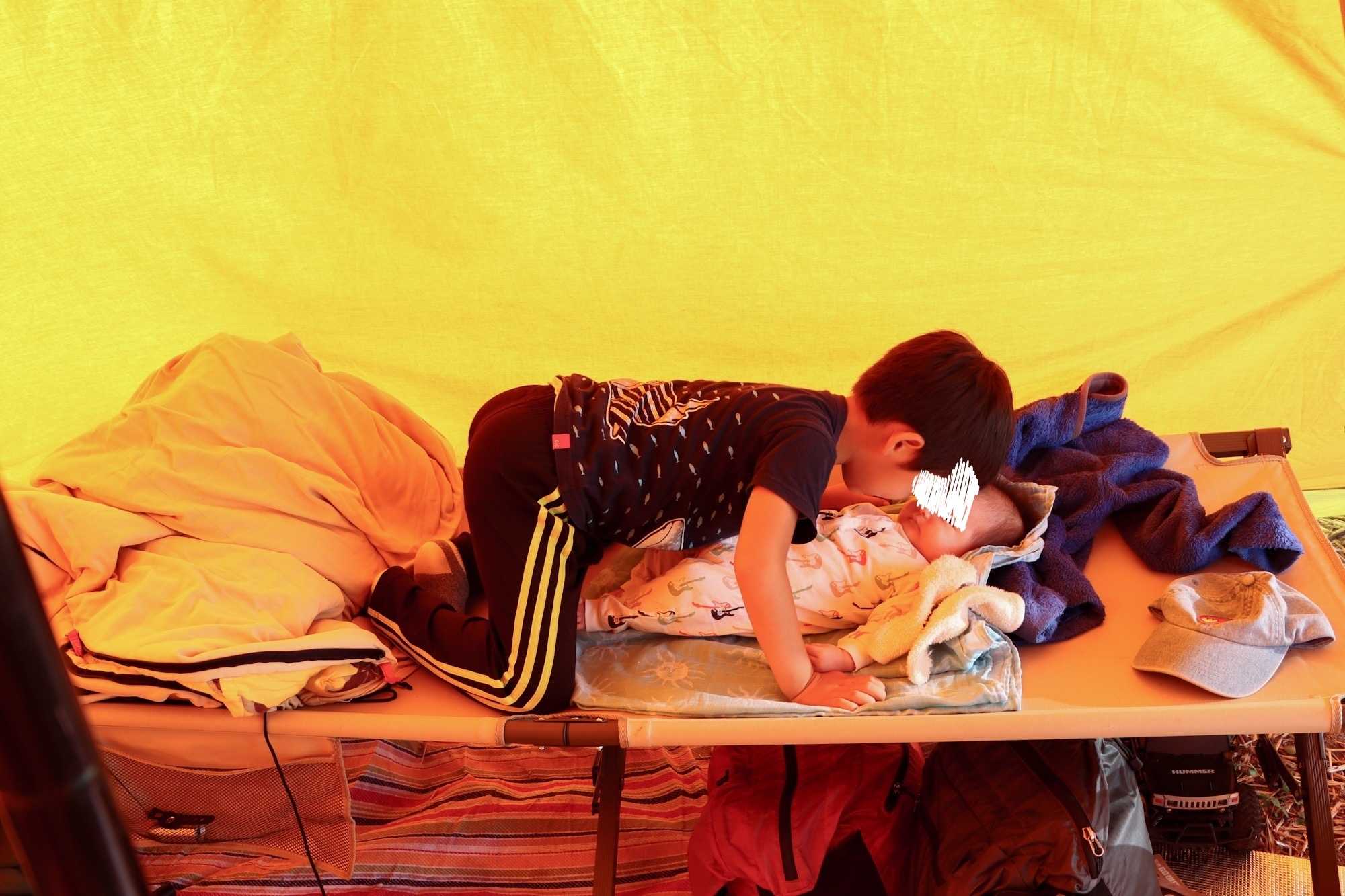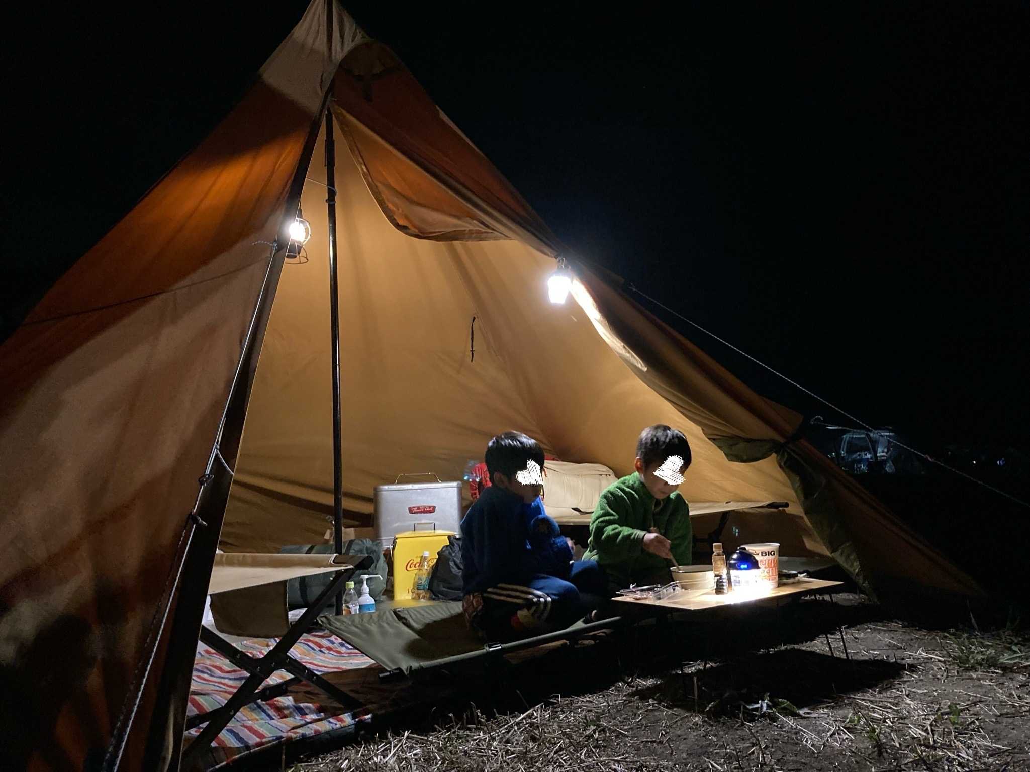 夫と上の二人が近所のキャンプ場でキャンプしていたので