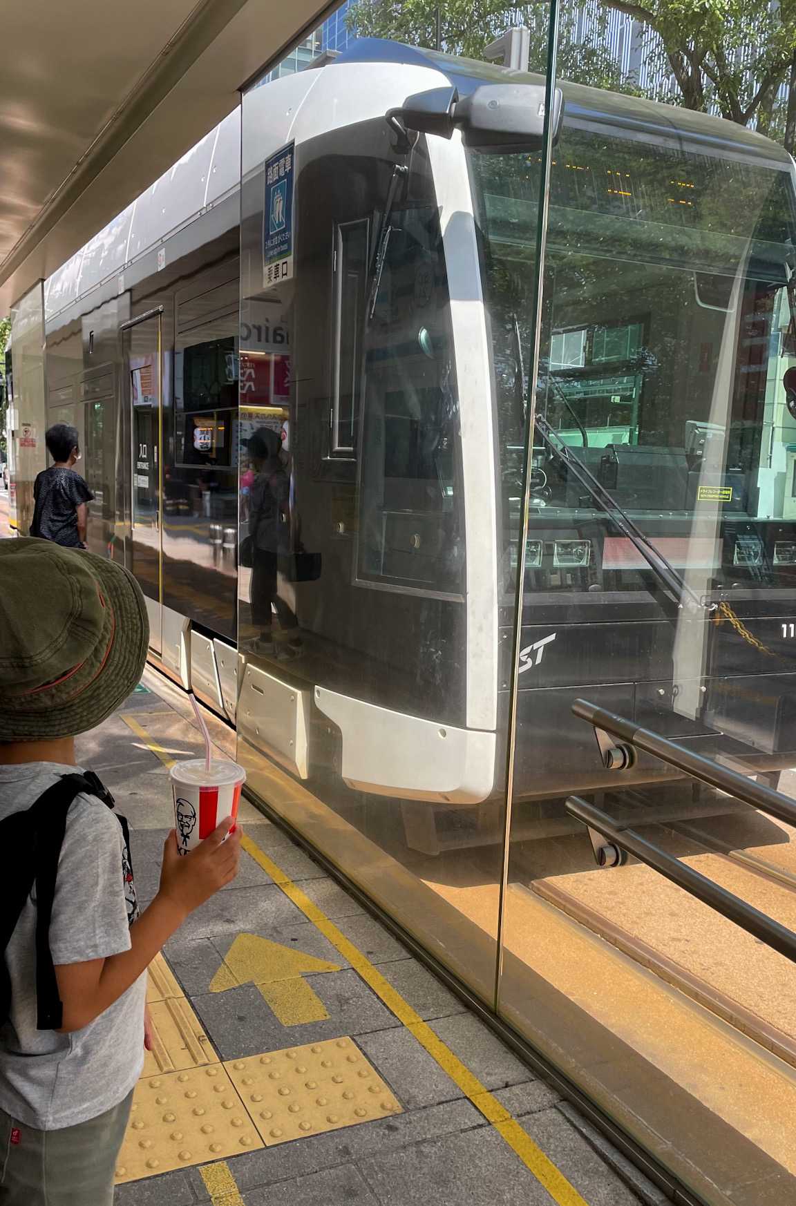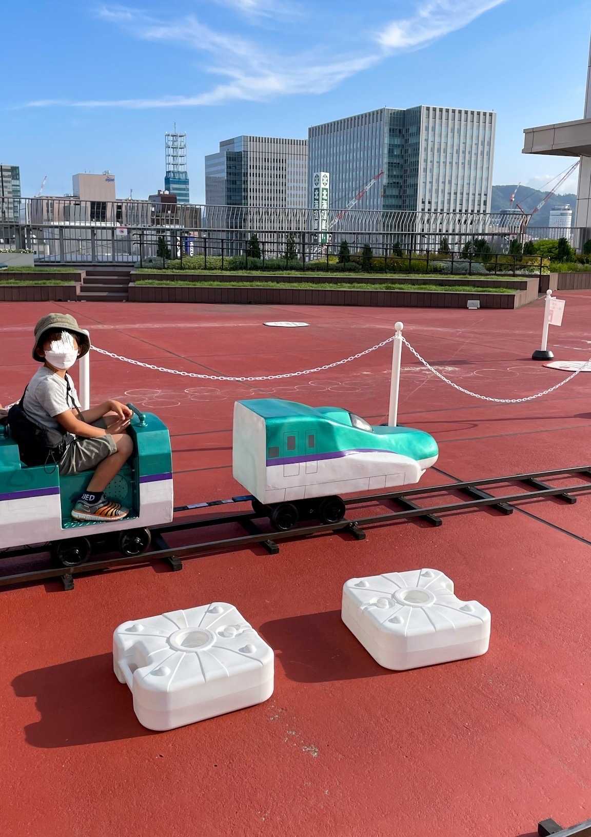 親たちが必死に漕ぐことで動くミニ新幹線!