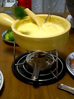 チーズフォンデュをたべました。チーズフォンデュのセットを買ってやってみました。ジャガイモにブロッコリー、ウィンナーに人参フランスパンと、定番といった具材ですが、とってもおいしかったです。