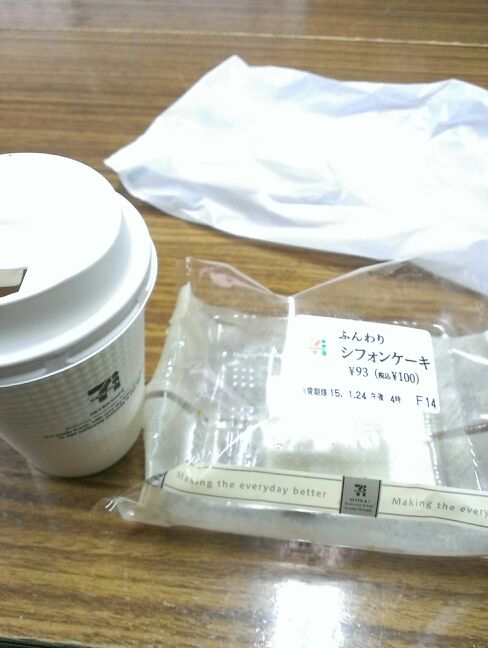 さぁ、今日も頑張ろう! 朝寝坊してコーヒー飲んでこれなかったので、セブンイレブンのコーヒー飲んでます シフォンケーキまで買っちゃいました 食べる前に写真撮るの忘れたー