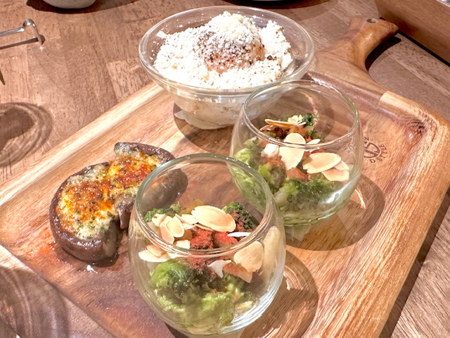 椎茸ステーキ、トリュフ温玉のポテサラ、