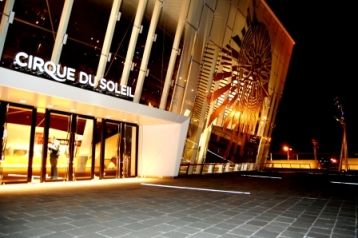 お誘いを受けて、【シルク・ドゥ・ソレイユ】の【ゼッド】観てきました。舞浜にシアターがあるなんて知りませんでした。いつ頃のことでしたか、(だいぶ前に)【サルティンバンコ】を観ましたが、あれはどこだったかなぁ・・・?(代々木?) イクスピアリ内のショップを横目に(只今セール真っ最中!)、案内板の指し示す通りに歩みを進めますと、開けたスペースに・・・ドーンと【シルク・ドゥ・ソレイユ】シアターが。 帰りがけに撮りましたので暗いです。 この会場って、【ZED】のためのレジデント・シアターなんですよね?ひゃあスゴいなぁ・・・! 【ZED】に関することで唯一知っていたのは、日本人のバトンの選手が出演しているということです。(稲垣正司さん、キャラクター:ジン)稲垣さんのバトンさばきは、TVで何度か観たことがありました(すごい)。 * 座席は種類がいくつかあり、私たちはワイドビューという後方の座席でした。夕方で目もかすんでおり、私にはちょっと観づらいところもありましたがおおむね把握できました。 稲垣さんのジンはメイクや衣装も素敵でしたし、やっぱりあのバトンさばきはすごいなぁ・・・と思いました。キラキラと高速回転するバトンは幻想的でもありました。 私がもっとも気に入ったキャラクターは、クラウンの2人です。赤鼻、可愛い帽子、ユルかわ?な衣装(腰周りに浮き輪が付いているような体型が可愛い)、動きしぐさ、話し方、色々なアイテム・・・どれをとってもツボでした♪そのくせ、タップダンスやパントマイムが上手で、全部ひっくるめて好み、完璧♪てな気分でした(笑)。(2人の帽子はショップで売っています。) バリバリの肉体系としては、長い布としなやかな体を使った演目や、綱渡りと言ってしまうにはあまりにも盛りだくさんなもの、ザ・サーカスみたいな空中ブランコ、己の肉体のみを使い、緩やかな時を刻む肉体芸術・・・色々印象的でした。 それから、ミュージシャンのメイクや衣装も世界にマッチしていてよかったです。特に帽子がいい感じで、私のツボでした♪ ゼッドの冒険、天と地の出会いの物語、堪能させて頂きました。(1時間半、あっという間に過ぎました。) パンフレット(2,000円)とミルフィーユ。 お菓子の箱のデザイン、素敵。クラウン2人の帽子も欲しかったですし、仮面も欲しかったですが、本日はここまで。 * この日をもっと楽しむための私流お遊び。 京劇みたいといいますか、明らかにシルクではなくなってしまいました(笑)。 今日の友人は適応力があると申しますかとらわれることのない人で、とても喜んでやってくれました。(小道具が無駄にならなくてよかった(笑))(メイクもちゃんとシルクになっていて上手でした!) ユーモアセンスがないと理解し難いでしょうなぁ(笑)。 私はこういうお遊びやサプライズが大好きです。 (面白かった!) チャオ