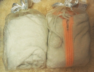 昨夜の日韓戦(サッカー、アジアカップ)、後半の何分からか観ました。その時は1-1で、その後延長、フリーキック?(本田選手)からのキーパーに弾かれて、からの詰めてきた細貝選手のシュート!(先の1点は、前田選手ということです。やりますね~。) もう試合が終わるかというときに、勝ったか?と思い始めた頃に韓国もゴール!2-2。 PK戦。これがまたすごかったです。川島選手。1本目、右に飛んでバチーンと弾く!2本目、ほとんど真ん中?ちょい左に体を張ってボコーン!(記憶違いでしたらすみません。)3本目は、枠の外にピューッと。××× まさに守護神という感じでした。 * 何年くらい着ているのか忘れるくらい着ているパジャマたちがだんだんと生地が薄くなってきて寂しい感じになってまいりました。そこで、前々から目をつけておりましたモノを買いに行きました。(セールしていました♪)(定価で買ってあげられなくてごめんよ(涙)) 専用の袋がまた可愛いんです。光沢のある淡い色のオーガンジーにリボン。(凝ってるなぁ♪ テンションあがります↑) リボンに何かかいてあります、【FuwaFuwaStory】とひつじさん♪可愛い~♪ 【ESTHETIC PARKA】エステティック?! パーカー。 スクワラン&コラーゲン配合、だそうです(驚)。(へー!)通常のふわふわモノよりも確かにちょっとしっとり感あるかもしれません。パステルカラーが可愛らしいです。 【ESTHETIC PANTS】パンツ。 私には、薄いミントグリーンみたいな色に見えるのですが、タグを見ますと、バニラホワイトとなっています。パンツにもポンポンが付いています。股上は深めで、お腹まですっぽりです。 *私は冬場、パジャマの上にガウンなり、ちゃんちゃんこなり、何かしら羽織っていますが、こちらの場合は羽織らないでも平気なときがありました。(激寒い早朝などは無理でしたが。)しっとりしているだけでなく、温かさもなかなかのものだと思いました。 (ポリエステル70% ナイロン30%) もふわ~&ややしっとり パーカ、パンツのほかに、手袋、ハイソックス、クルーソックス、ハラマキ、襟付きケープ、ショートパンツなどがあるようです。 *EMIネットショップ*キャラクターグッズのリトルリーフ スクワラン&コラーゲン配合★【Fuwa Fuwa Story】パーカー(ベージュ)価格:5,145円(税込、送料別)*お洒落Mama 美容成分ナノテク配合の肌触りで気持ちもまったり。スクラワン&コラーゲン配合 しっとり潤うモ...価格:4,095円(税込、送料込) 一度つけたら手放せないアイテム★やわらかあったかハート柄腹巻きパンツ[防寒下着]【smtb-k】...価格:2,940円(税込、送料込)
