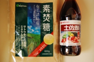 先日、喜界島のお砂糖がなくなり、届いたばかりの百彩はちみつで代用していたわけですが(もったいない)、今回は【素焚糖】というお砂糖を買ってきました。 (そのままかぶりつきたいくらい美味しそう・・・(笑))奄美諸島産 さとうきび原料100%600g 大東製糖株式会社モンドセレクション三年連続金賞受賞だそうです。 ●主要栄養成分比較表●(100gあたり) 素焚糖*1 三温糖*2エネルギー 383kcal 382kcalタンパク質 0.3g Tr脂質 0.1g 0g炭水化物 97.9g 98.7gナトリウム 77.1mg 7mgカリウム 212mg 13mgカルシウム 39.8mg 6mgマグネシウム 14.8mg 2mgリン 4.7mg Tr鉄 0.48mg 0.1mg亜鉛 0.06mg Tr銅 0.02mg 0.07mgマンガン 0.15mg Trクロム*1 0 0セレン*1 0 0ヨウ素*1 0 0*1 分析値は当社調べ*2 五訂増補 日本食品標準成分表Trは微量の意パッケージより それからミツカンさんの【土佐酢】。酢の物、おひたしをもっと取り入れなきゃ、という気持ちで。 砂糖で初 モンドセレクション金賞受賞大東製糖 素焚糖 600g価格:270円(税込、送料別) 【ミツカン 土佐酢】★税込2480円以上で送料無料★ミツカン 土佐酢(150mL)価格:138円(税込、送料別)