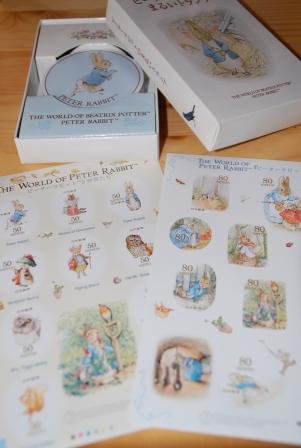郵便局で、ふと壁面に目をやると発売中の切手がズラリ・・・ あぁ私には目の毒・・・(笑)。しかし目が離せない・・・。 ピーターラビットの切手だけ買ってきました。 郵便局で購入、THE WORLD OF PETER RABBIT「ピーターラビットのおはなし」、「ピーターラビットと仲間たち」の切手。上は我が家にある「ピーターラビットのまるいトランプ」。 いい雰囲気です。素敵です。 ピーターラビットの絵本、母が好きで家にありました。あの本、どこにいったかなぁ・・・もう処分されちゃったかなぁ 私はこどもの頃、色彩や雰囲気をいいなぁと思う反面、人のような立ち振る舞いとリアルな動物の姿形に違和感といいますか、ちょっとしたこわさも感じていたのかなぁ・・・(リアルな描写が苦手なのかもしれない・・・)こどもながらに洗練されているとか素敵な絵だとかは思っていたのですが・・・妙にショックといいますか、ほんの少しのそういった気持ちがあり、すんなりとは入ってこなかったような記憶があります。 しかし大人になるにつれ、その感じ方も変わってくるわけですが。 ―切手を観て(みんな洋服や小物がおしゃれだな~。・・・この猫の表情とモフッとしたズボンがたまらん・・・(笑))こねこのトムっていうのか・・・内容思い出せないなぁ・・・) * 【みんなに優しい丸いかたち】ピーターラビットのまるいトランプ 【楽ギフ_包装】価格:1,050円(税込、送料別)HERITAGE* 【送料無料】こねこのトムのおはなし新装版価格:735円(税込、送料別) 【送料無料】ベンジャミンバニーのおはなし新装版価格:735円(税込、送料別)楽天ブックス