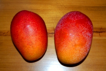 早速、食させて頂きます♪ カットしてもうこの時点で、見た目で、すでに美味しい!と心の中で叫ぶ(笑)。 *パクいやそりゃもう美味しいですし、好きですね、マンゴー♪色、テリ、水分、食感・・・ジューシーです♪少しも無駄にしたくない・・・小判型の種の周りも・・・しかしヌメりがあって難しい・・・でもできる限り・・・ お次はバナナの皮むきのごとく・・・筋がみょーんみょーんと かぶりつき~♪(笑)(丸ごとは筋が歯に引っかかる・・・) 注文から数ヵ月後・・・そういうのもありまして感慨も一入です。美味しかったです♪ご馳走様でした! * 【日本農業賞受賞】宮崎県西都産完熟マンゴー(M~Lサイズ)<1玉>価格:~980円(税込、送料別)M-L 共同購入 【日本農業賞受賞】宮崎県西都産完熟マンゴー(M~Lサイズ)<1玉>価格:980円(税込、送料別)M-L 通常購入ポテトファクトリー M-Lサイズ他、規格外350g以上、2L、規格外品800gセットの共同購入、通常購入あり。 北海道のアスパラも気になります。*