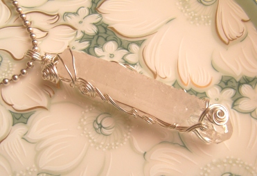 ダンビュライトの原石をドレスアップしました。『A sword of Michael』(ミカエルの剣)と名づけました。ダンビュライトはとても霊性の高い石。純粋なその波動は、持つ人を天使の領域へと結びつけます。この石を手にすると、自分が自分ではないような不思議な気持ちになります。そう、まるで人間ではなく天使、それも女性ではなく男性の『勇者』なのです。 『誰が神のようになれようか・・・・』ミカエルという名を訳すとこのようになるようです。天使といえども神にはなれない。そんなメッセージが聞こえてきます。 私たちはといえば・・・・日本人にとっては、天使も神様も夢の中のようなお話。でも、手の中に天使由来の石があったら、時空を超えてミカエルの気持ちを垣間見れるような気持ちになります。
