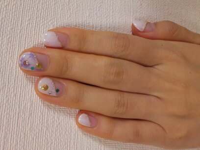 いや~、暑い1日で参りぎみでございます…今日は午後イチでネイルのお直しに行ったのだけど、なんと被っていた麦わら帽子を風に飛ばされ車道のど真ん中に~車たちは、それを避けながら走ってくれてはいたんだけど、信号が赤に変わる直前、グシャっっていう音とともに、あえなくせんべい帽子に成り果てましたとさ(泣)セール品だったし、ショックは少なかったけど…その変わり果てた姿は、哀れだったそして夜はパーソナルレッスンライブで踊るタンゴデモデルノ、、アドバイスが欲しくて取ったレッスン。最初に、短期間ではどうしようもなく、ブルーになるだけの事はあえて言わないねとの条件付きで1回踊るごとに、私に足りないことは何か、単刀直入に、分かりやすく、教えて下さいました。一生懸命練習してるのは分かるけど、普段のパーソナルでの先生からのメッセージを理解しきれていないと見えて、練習方法に問題を感じること。一定ラインには達して安定しているけど、そのラインを越えられず停滞していること。年月を経て、頑張れば誰でもできるようになること以外のことに目を向けてほしいこと。あらためて、今までより踏み込んだ、具体的な練習方法を教えて頂きました。要は、先生の言わんとしていることを察知して次回のレッスンに活かす力が、まだまだ欠如していますよとおっしゃってたわけですとまあ、大切なお話を聴かせていただきながらのレッスンだったので、今日はタンゴデモデルノのみ、シギリージャはお休み。でも、それで良かったもう闇雲に練習する時期は過ぎたけど、今日教わったことだけを大切に、本番まで過ごしたいですね~だって、少なからず、レッスンの成果を出せないまま次のレッスンになってしまってたわけだし、今日のレッスンを本番で体現することは、せめてもの小さな恩返しになると思うから。ん~。今日も感謝感謝♪今夜は思うところがたくさんありすぎて、やけに真面目な日記(笑)あ、でも帰りは、池袋ルミネでセールを物色、先生お勧めのお洋服たちをとっかえひっかえしと遊びまくり、なにも買わずに帰りました( ̄▽ ̄;)あれは先生がご一緒でなければできないお楽しみですね~最後に、ネイルの画像♪これじゃ分かりづらいけど、シェルとストーンで、おまかせで夏らしくしてもらいました。指先だけでも、涼しくね