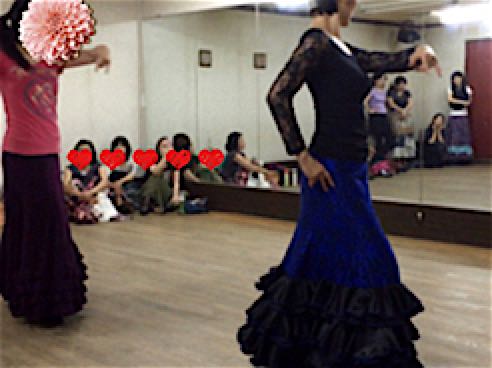 長丁場のレッスン終了〜。 1時間目★バーレッスン 今日はなんだか見慣れない動きをするなーと思ったら ファルーカの準備(・_・; 直線的な身体の使い方が 難しくてビックリ! バーでやった事を 最後にフロアでショートの振りとしてやるんだけど 先生がやってるのとは違う動きに見えるよ… でも 同時に 『振りを踊る場所に応じてコントロールするテクニック』を教わりました♪ 上手くできなかったけど たのしい(^_^*) 2時間目は 色々と てんこ盛りっ。 まずシギリージャのパソ&タパを復習し… 次はソロンゴ。 マントンについては 今日はスルー。 綺麗に使えるように これからも長いスタンスで訓練デス。 タパから後を最後まで 教わり直しました。 ちょいと弱気が顔を出し(笑) 『音録って良いですかぁ〜?』と聞いてみたけどね。 一旦はOKと言ってくれたけれど 今までも 振りがすぐ取れなくても 何度も自分で推測して試行錯誤してきた時間(そういう時間を知っていてくれたことに ちょっとウルウル)が 私を成長させているし 本番の失敗を失敗にしないための力が着くと。 で結果 やっぱり録音はナシ(・_・; もう少し 頑張れるかな ワタシ… でね。残り時間10分ほど… ファルーカ 始まっちゃたよ!Σ(・□・;) とりあえず エントラーダ。 椅子を引きずってきて 座って 豪快に足開いてから足組んで… なんだか難しいジャマーダかけてパソやって 終わった(笑) さっきバーレッスンでやったの これか! まったく様にやらないや…( ̄O ̄;) しかも 座ったまま激しいパソやるって 今の筋力じゃできないわ… なんの予告もなく突入しちゃったファルーカ がんばるよ…ウン。 身体中ミシミシいってますが 明日はアモールレッスンです!