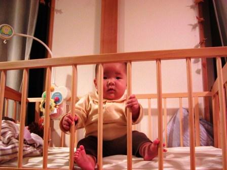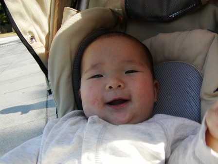 後、10日ほどで4ヶ月を迎えるyurayura。なんだかここ最近、急成長しております。寝返りができるようになったな~と思っていたら。。。コロコロコロコロコロロコロロロロロ=====3寝返りをしてまた自分で転がりまたまた寝返りをして転がり、部屋中冒険中!! そのスピードがハハが思うより速い。ちょっと目を離して、ねぇ~yurayuraと言ってyurayuraを見たらその場所にはいない。。。なんとまぁ~。横に転がるだけではyurayuraは気がすまないらしい。。。前に目標物を見つけるとほかのものが見えなくなるのか、超集中して前進===3うつ伏せになり、うまいこと足で床をけって、頭を変に(斜め後ろ)倒して勢いをつけたり、方向を調整したり。参りました。洗濯物を干していると、部屋の半分ほど前進していることがしばしば。方向転換もすごい。出来ている。どうして!?!?!?まだ腰も据わってないのに。。。やっと首がしっかりしたのに。恐るべしyurayura。最近、ちょっと自分の意思がはっきりしてきた!?!?のか!?!?!?よだれが出るな~と思っていたら、歯茎がかゆくてたまらないらしい。『キィ~。』とは言わないが、かゆくてかゆくてイライラしている様子。歯がため付きのおもちゃを買い、早速!!でも思うようにまだつかめないらしく、それにもイライラして大きな声で泣いて怒っているyurayura。おもちゃに手が伸びるようになってきた。一人でおもちゃをあっちこっちとひっかきまわしてあそんでいるyurayura。ベビーベットからはおもちゃが全部落ちまくり。。。それと、寝返りをたくさんするようになり頭を打ちまくり。。。起きているときはベビーベットではダメになってきた。。。早いな~。myumyuの細かいおもちゃやら紙切れやら、部屋にはたくさん落ちている。。。片付けなくては。誰か~収納上手さ~ん。アドバイスを!!我が家の細かいものを何とかして~。