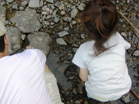 yurayuraが生まれてから満足に外遊びができていないmyumyu。夏ということもあったけれど。。。外出はショッピングモールや夕方に近所の公園ばかり。夏も終わりに近づき心地よい風のなか、思い出を作りに。去年、myumyuが通うサークルでみんなで行った川のある公園へ。家族4人。つくつくぼうしが鳴き、夏休みも終わり貸切。かにを捕まえに。 yurayuraをスリングに入れて、音と風が気持ちいいのかyurayuraも空を見たり森を見たり楽しんでいる様子!?!?いや、大変迷惑そうな様子!?!?!? パパも童心に返ったように、myumyuと遊ぶ。石を投げたり、棒を振り回したり、踊ったり。 かにさんも、まあまあすんなりと見つけることが出来、ビニール袋に確保!! myumyuはかにさんを触ることが出来ずに葉っぱで何とかしてました。なんだかとても心地よい時間が流れた。秋の訪れを少し感じた1日。