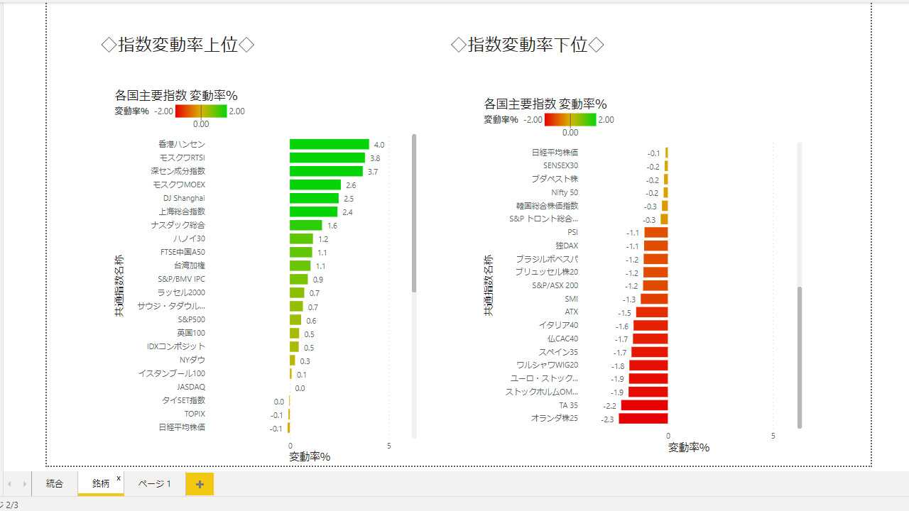世界の株価指数の変動を世界地図に表して… August 22, 2021