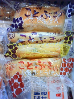 ただいまおじいちゃん、おばあちゃんにいっちゃんとリョーヘーの面倒を見てもらい、買い出し中です。 (リョーヘーは昼寝中で、いっちゃんは『おばあちゃん家にいる!』と言うので…) 買い出しの一つ目 ことぶきやのブドウパンです。 あんこ入り1本140円、カスタードクリーム入り2本140円です。 天然酵母を使った、美味しいパンです。 私、昔から美味しいパンが大好きです。 ここのパンは、食感がなんとも言えず、グッドです(^人^) 買い出し2つ目 姫路の駅そば(カップ麺)はどこにもなく、断念(゜Д゜≡゜Д゜)? なので、かわりに姫路ラスクと海苔てんぷら(お菓子)を買いました。