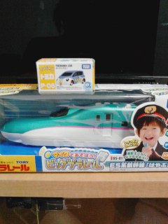 リョーヘーへのクリスマスプレゼントの1つ。マイクで遊ぼう! ビッグプラレール(はやぶさ)です。即発送致します!数量限定超特価!『即納!』プラレール マイクであそぼう!ビッグプラレール BS-01 E5系新幹線「はやぶさ」 【楽ギフ_包装選択】【あす楽】なぜ「はやぶさ」をチョイスしたかというと、1~2ヶ月ほどまで、マクドナルドのハッピーセットでプラレールがもらえる企画があり、リョーヘーは「はやぶさ」をゲットして大喜びだったのですが、それを戸塚の友人宅へ忘れてきてしまったのです・・・。ということで、「はやぶさ」をプレゼントし、皆で遊んでいました。が、マイクが反応しない・・・。あれ?そんなものかな?プラレールだし・・・。音がでて、走ればいいのかな?なんて思っていましたが、よくよく考えるとおもちゃのタイトルが、マイクであそぼう!ビッグプラレールマイクを全面的に出しているのに、マイクが反応しないのはおかしい!電気工事士の資格をもつもっちゃんが、早速カバーを取り外し、マイクのスイッチを直接押して見るけれど反応無し・・・・。仕方がないので、タカラトミーのお客様相談室へ連絡。 私「あの~、マイクで遊ぼうビッグプラレールで、マイクが使えないんですが・・・」 オペレータ「いつ御購入して、いつ故障に気づかれましたか?」 私「12月22日に購入し、今朝開けたら使えませんでした」 オペレーター「まぁ、大変申し訳ありません。クリスマスプレゼントだったんですね。 それでは、明日着で新しいものをお送りしますので、 お手元にあるものは処分していただいてよろしいでしょうか?」 私「はい。よろしく御願いします。」あれ?送り返さなくていいの?さすが夢を売るタカラトミー。明日には我が家に2台目の「はやぶさ」が到着します。それを聞いたもっちゃんは「どうせなら、別のがいいな~」何て言っていました(笑)。タカラトミーのお客様対応って素晴しいと思いました。これからも良いプラレールを作ってください!