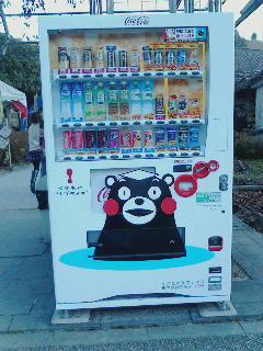 おはようございます。 今朝は二度寝で寝坊しました。焦ったとです(;^_^A さて、ゆるキャラNo1のくまもん。 熊本・福岡の色んなところにいました。 可愛かったので、つい写真を撮りました。 枚数が多いので、メール投稿で写真がキチンとアップできるかな? 温泉地では、コカ・コーラの自販機も写真の様になります。 いいなぁ~。やよいちゃんの自販機もこれになれば、 売上アップ間違いなしだと思います。 また、ソフトバンクホークスとコラボしてました。 『熊本までかっ飛ばすもん』 可愛い~! 福岡県には35近いゆるキャラがいるそうですが、 それらを押し退けてソフトバンクホークスとくまもんがコラボ! 会社の同僚にくまもん×ソフトバンクホークスのクッキーを配布しましたが 反応が今一でした。 残念!