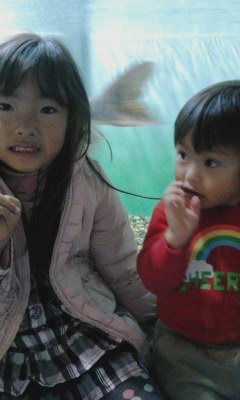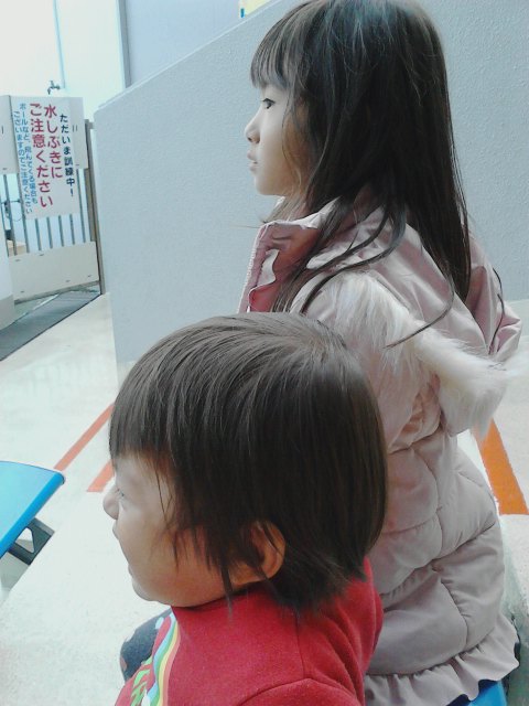 首都高速に乗ろうと思ったら事故渋滞、水族館の入口がわからず、右往左往しましたが、到着すると子供たちのテンションはMAX(>_<)