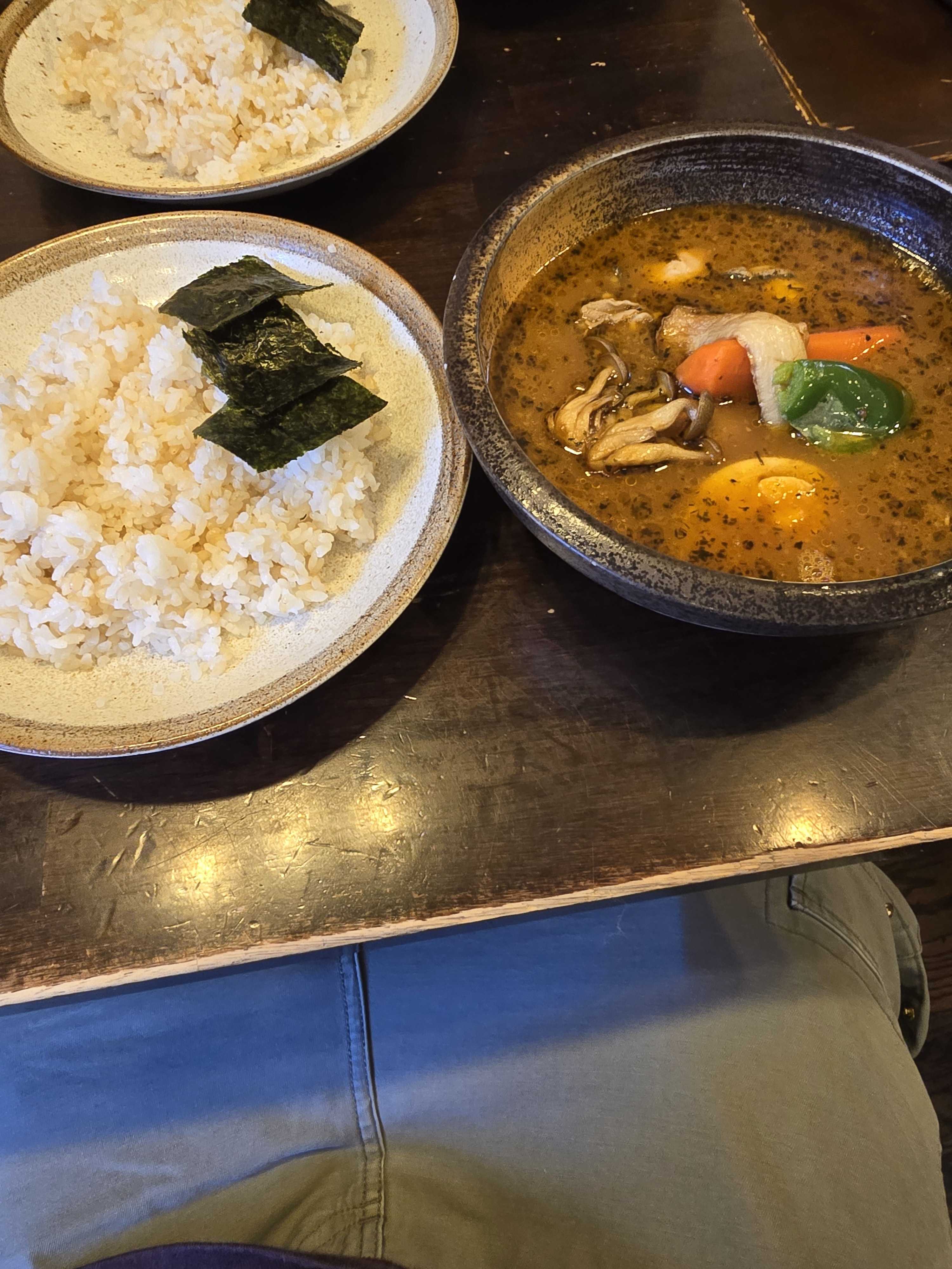 今日は風が強いですね💦その中プチ出張🍛【札幌スープカレー らっきょ&Star】今日のお昼は久しぶりにスープカレー。訪れたのは「らっきょ&Star」。運ばれてきた瞬間にスパイスの香りがふわっと広がり、食欲全開。スープはさらっとしつつもコクのある仕上がり。野菜も大きめカットで素材の味がしっかり。特に舞茸の香ばしさがアクセントになってて◎。ライスには海苔が添えられていて、ちょっとした香りと食感の変化が楽しい。スープに浸して食べるのもアリ。札幌の本格スープカレーを、しっかり堪能できました。▶️らっきょ&Starスープの辛さも選べるので、辛いのが苦手な人でも安心。スパイス好きにはたまらない一杯。らっきょ&Star夏バテ予防にご家庭でも🍛↓【ランキング上位入賞!】絶品チキンの札幌スープカレー 2食 セット 送料無料 スープカレー レトルト 人気 カレースープ チキンレッグ スープカレー 北海道 レトルトスープカレー スパイスカレー 保存食 非常食セット ギフト 食品 おとりよせグルメ