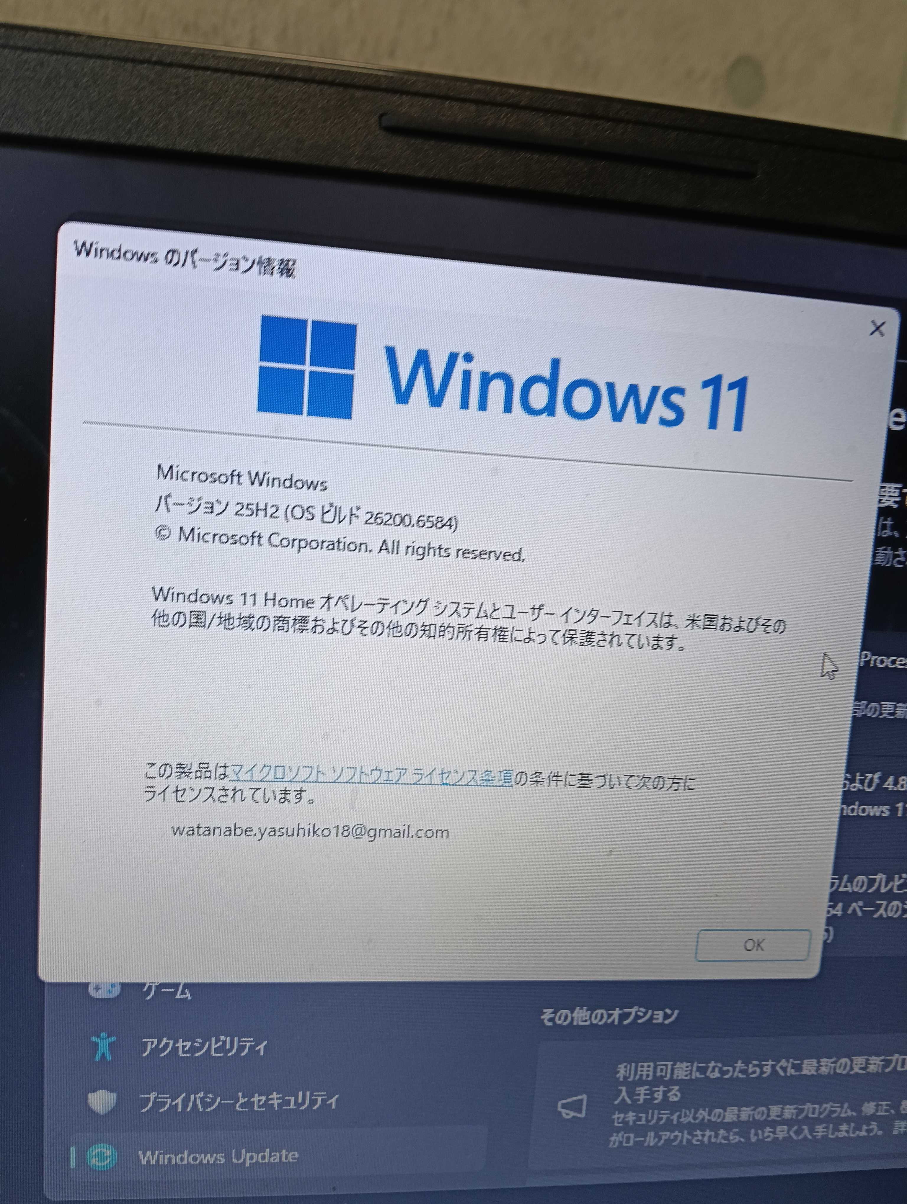 windows 11 22H2から25H2にアップグレードしました。たまたまPCを使用することもあり、ちょうどよかったです。