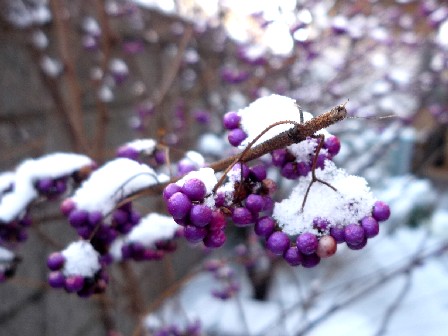 コムラサキシキブピラカンサ今朝の気温はマイナス7度昨日からの雪もどうにかやんで晴れの朝豪雪地帯と違って積雪は少なく3~4センチくらいでもお昼の気温は昨日も今日も0度以下12月にこんなに寒かったことってあったかな~なんて思ってしまいます朝6時半の玄関前明日も雪の予報が出ているし今回の3連休は寒さに震えてるだけで終わってしまいそう^^;