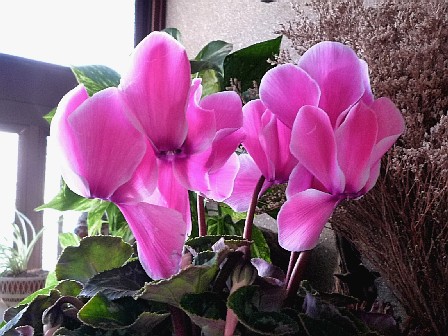 シクラメン今朝は起きたら厳しい~~寒さ!!まだ薄暗い中新聞を取り込みながら外の温度計を見てみるとなんとマイナス12度まで下がっていました台所のかごの中では伏せてあった湯飲みやグラスが凍り付いていて大寒のころの寒さ??寒さだけは早々と年越しをしたようです^^;今日は冬至これからは少しずつ日が長くなると思うとちょっとうれしいですね。例年のようにかぼちゃをいただいてゆず湯に入って風邪を引かずに新年を迎えられそう(*^^)vかな???