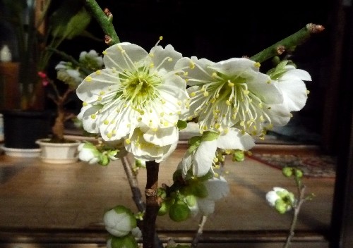 梅お正月には間に合わなかったけれど今年も咲きました今日は小寒・寒の入りそれでも今朝の気温はマイナス2℃とちょっと暖か(*^^)v明日は軽井沢でマイナス10℃と厳しい予想こちらもきっとそれに近い厳しい朝になりそうです風邪を引かないようにあったかくしてやすみましょう