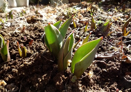 チューリップクロッカス朝夕はまだマイナス気温でも昼間の日差しはとっても暖かくなりました庭の雪もやっと消えて春の花たちが次々芽吹いています今朝 震災関連のニュースのなかで津波で流されたお宅の庭にお孫さんの誕生を記念して植えた梅の木が残っていたと報道されていましたお孫さんはまだ見つからないとのことでしたけど「この木を大切に育ててゆきます」とおっしゃる言葉に涙してしまいました