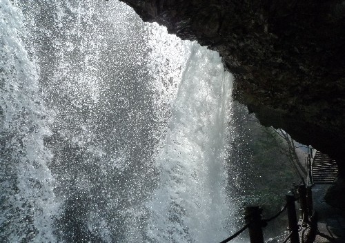 滝今日はこどもの日この連休中唯一のお出かけです実は2日の日に手首を傷めてながーい連休を取ることになった私自力での入浴が難しいので娘に頼んで温泉へということになりましたどうせ出かけるのならという主人の提案で北信までひとっとび!温泉に入るだけでなく近くの滝見物までしてきちゃいました滝の裏側を通ることの出来る通称「裏見の滝」痛む腕を抱えた私には「恨みの滝」??正式には『雷滝』という滝です