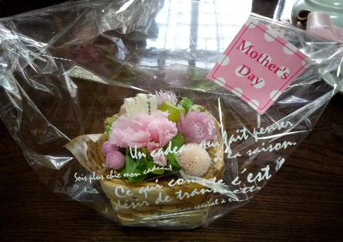 今日は母の日今年もお花が届きました可愛いブリザーブドフラワーはお嫁さんから息子の名前で届くけど選んでくれるのはお嫁さん(*^^)vとっても可愛いので正面からと後ろ側両方から撮ってみましたこちらは娘から義母と私にちょっとお小遣いが足りなくなったので二人で眺めてくれと・・・(笑)でもケーキとプリンのおまけ付き今日は来月の演奏会の練習で忙しいといってたのに届けに来てくれてお昼ごはんとプリンはしっかり食べてすっ飛んで帰ってゆきました(笑)花も好きだけど甘いものも大好き!ケーキもプリンもおいしくいただきました仕事を休み始めて1週間毎日のんびり過ごして美味しいものを戴いて復帰するころには太ってしまいそう^^;