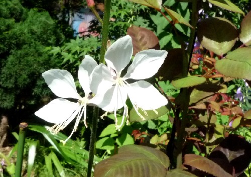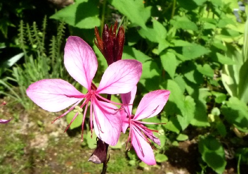 梅雨の晴れ間の晴天突き刺さるような強い日差しでも空気は爽やかです室内ではTーシャツ1枚では肌寒いほどさくらんぼが皆ヒヨドリさんのお腹に入ってしまったのでやっと木のお手入れができると主人が枝きりを始めたのでちょっとお手伝いもしかしたら口ばっかりうるさくて邪魔になるだけだったかも知れないんですけどねガウラ・ピンク一輪草桜の木陰でちょっと控えめだった花たち急にお日様に照らされてビックリかもしれません^^;