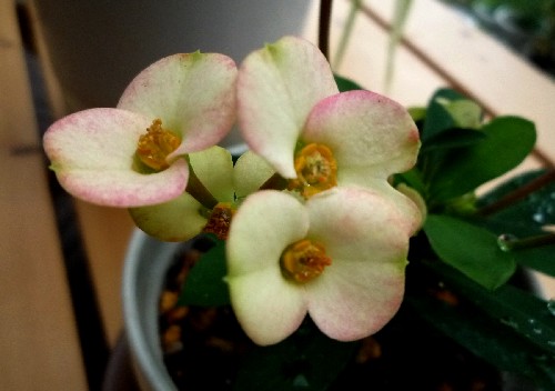 花キリンアブラムシ退治の薬を買いにホームセンターへ小さな観葉植物の並んでいるコーナーで見かけて連れ帰ってきてしまいました小さい小さい鉢に入って「私を連れてって」て言っていたんですよ(笑)さっそく一回り大きな鉢に植え替えて部屋のミニコーナーの仲間入りです(^^♪