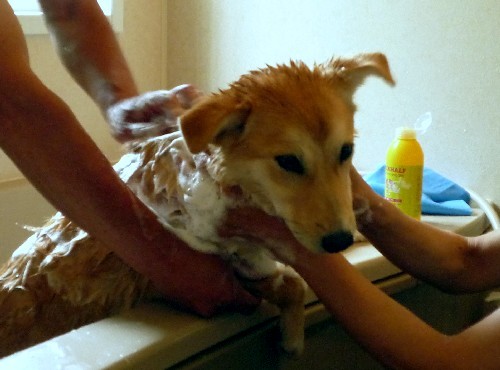 今日もいい天気陽射しは刺すように強いけど風は涼しくなりました夜にはもう秋のような風です暑い日が続いていたので犬臭さがひどくなったはるのシャンプーをはるもだいぶなれてきたのでおとなしく洗わせるようにはなったけど中腰でゴシゴシやるのは疲れますシャンプー終了後は一目散に庭のお気に入りの場所へせっかく洗ったのに~~^^;夕方は動物病院へフィラリアの予防薬をいただきにとはるのためのお休みのようになってしまった日でした