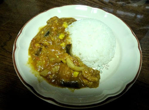 今日も暑い1日心もち食欲が落ちてきたようなので我が家の庭で取れたトマトとご近所から沢山いただいた茄子を使ってピリッと辛いさっぱりカレーに挑戦トマトの酸味が利いたまあまあの出来でした「辛い辛い」といいながら義母も完食(^^♪