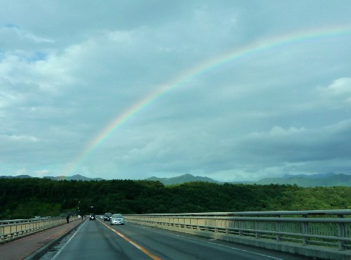 昨日は1年ぶりの里帰りおととし亡くなって医大に献体していた兄が帰ってきたので納骨と三回忌を済ませてきましたその帰り道孫娘が気付いた大きな大きな虹八ヶ岳南麓 清里の高原大橋この橋から富士山が綺麗に見えるので観光スポットになりつつある場所でも昨日は居合わせた人皆が虹を見ていましたっけちなみに富士山は右方向に見えます昨日は雲の中で見られませんでしたけど^^;義母の世話があるので今回は留守番しててくれた娘兄のために花を届けてくれていました