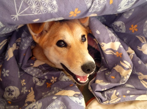 今日は朝から雨模様「はる」の飼い方教室3回目の日だけど雨の中での訓練はかわいそうなんて心配してたら良い具合に雨は小降りになりました今日も歩いて止まって「お座り」「待て」「伏せ」の繰り返し同じ動作ばっかりのせいか時々座り込みをして抵抗する はるそれでもお父さんと一人と一匹で頑張ってきました私の姿を見かけると甘えたくなって寄ってきてしまうのでちょっと離れた所から見てますけど時々降る小雨の中気温は12~3℃と寒かった~~家に入ったら早速コタツにもぐりこんでグッスリはるも寒さと緊張続きで疲れたよね~~(^^♪