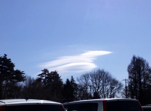 きょうはお休み義母の通院にお付き合いのあとちょっとお買い物スーパーの駐車場で見たのが「レンズ雲」午後ははるとドッグランへでかけ駐車場に車を止めて空を見るとここでも見ることができましたこの雲の下には小さく富士山の姿もあるんですけど写真では見えませんね~^^;4月上旬の陽気とあってぽかぽか暖かドッグラン周辺の土手では「おおいぬのふぐり」が咲き始めていました