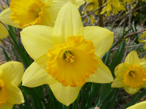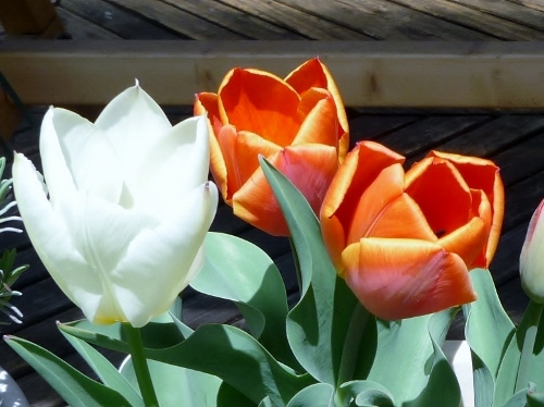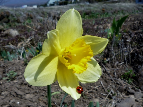 今日も快晴嬉しくなって布団干しやら大物洗濯ホカホカフワフワになりました!(^^)!けれど花粉もいっぱいなようで目は痒くなるし鼻もムズムズグスグス(-_-;)朝はマイナス3℃と寒かったけど昼間は5月なみなったそうで汗ばむくらいの陽気散歩道も春色に・・・庭のチューリップも咲き始めました