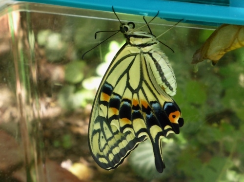 今年も庭の山椒に卵を産んでいったアゲハ蝶幼虫は見た目が気持ち悪いのでできるだけ目をそらしてきましたけど今日無事に羽化したそうです仕事に行ってる間のことだったので旦那様が写真を撮っておいてくれました生憎飛ぶところは撮れませんでしたけど無事に巣立っていったそうです!(^^)!
