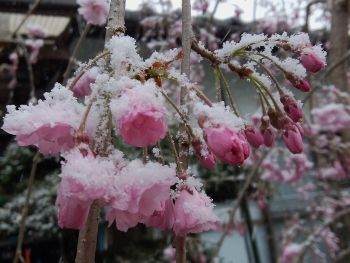 今日は朝から雪が降ったり止んだり開き始めた八重紅枝垂れも雪を被って寒そう午後は懐古園にお花見と思ってたけどこんな天気には出かける勇気が出ませんねおまけのはるお母さんお休みだから散歩行くでしょって待ってます残念だけどこんな日は散歩なしだよ~~ん