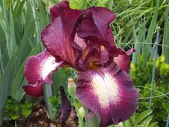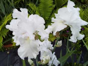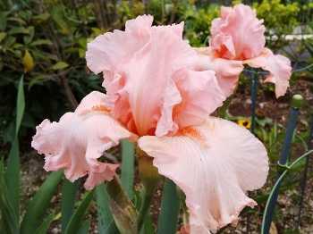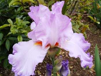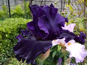 このアイリスたちの根元に細々と育ってる苺
