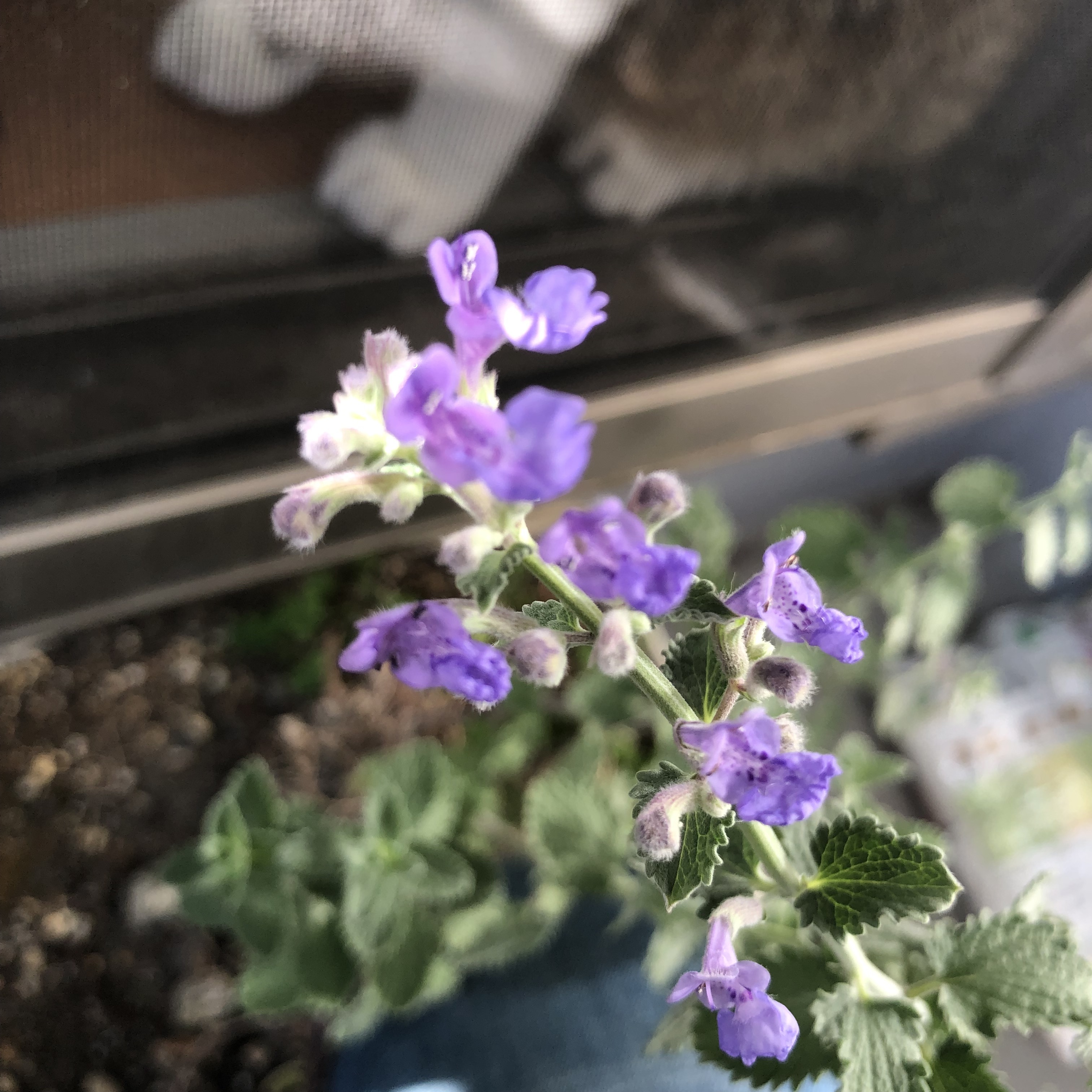 今朝、ベランダに出たらキャットミントの花が咲いていました。去年初めてチラッと咲いただけでも感動したのに、今年はもっと咲いてくれて嬉しい✨ニャンズも興味津々で見に来たので窓越しにお披露目、キャットミントと言うだけあって猫を惹きつけてしまうのかな。犬薄荷とも言うらしいのが何とも不思議なネーミングですが、小さい紫色の花が本当に可愛いです。それにしても今日は本当に良い天気。まだ6時前なのに朝日が眩しいくらいに差し込んで、一緒にいるニャンズもいつもに増して神々しい…?最近寝つきが悪い上に朝も早く目が覚めてしまうので完全に寝不足なのですが、こんな光景が見られるなら早起きも悪くないなぁと思いました。いつものスズメ達も飛んで来て、良いなぁ〜こんな静かで穏やかな時間がずっと続けば良いのに。もう人間は誰も起きて来ないで欲しいとすら思ってしまいます。1番花付きが良い茎を1本摘んでお供え、ナギ、りょふ、今年も咲いたよ〜。今日も良い1日でありますように、元気で過ごせますように。と、願ったからなのか、その後夫が起きて来るまで才知が異様に興奮してちょっと大変だったのが解せない…やめて才知…またテレビ壊れたらどうするの…。知恩までもが参戦して、やっと落ち着いたと思ったらテレビの前を仲良く陣取って動かないし…そこに居たらテレビのリモコンが効かなくなるから退いてよ〜おはスタも良いけど録画チェックもしたいんだよ〜。本当に、こんな時だけ仲良く結託してずるいぞ。テレビ前のトゲトゲ、全然効果ないからいい加減退けようかな。キャットミント 犬薄荷 ‘ライムライト’