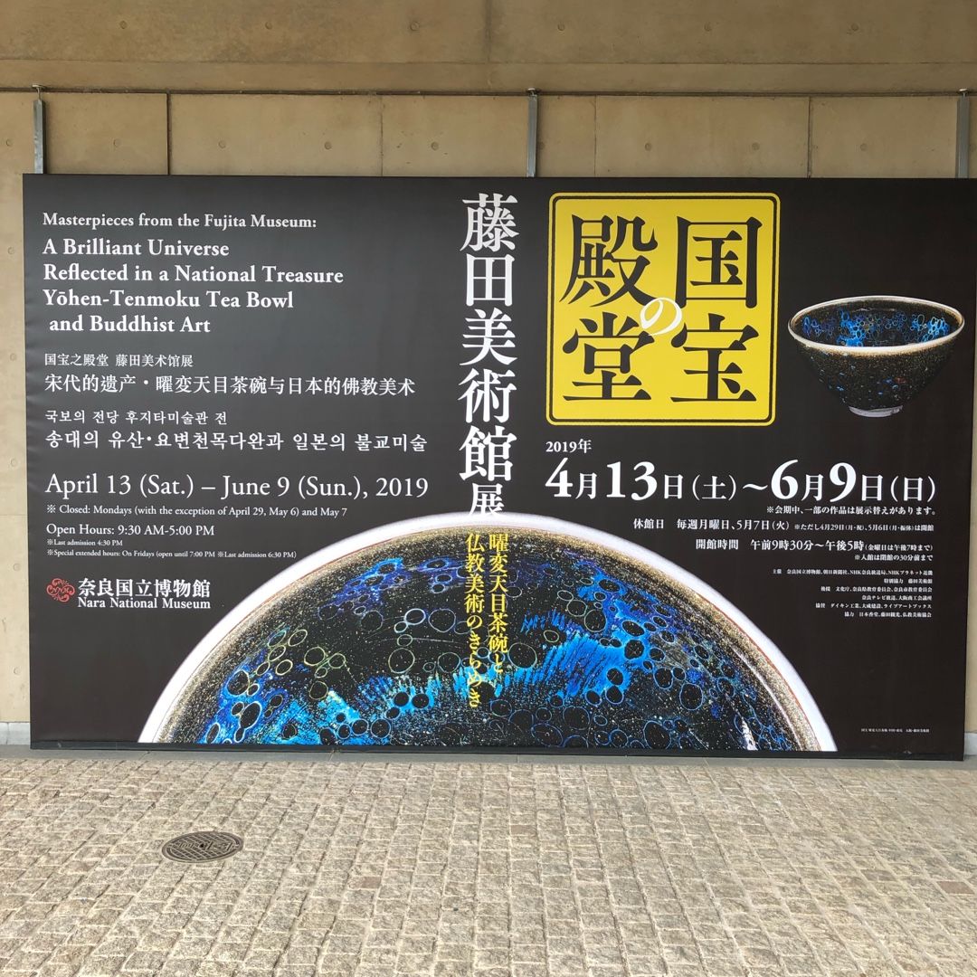 今日は、両親を連れて奈良国立博物館で開催中の『国宝の殿堂 藤田美術館展 ー曜変天目茶碗と仏教美術のきらめきー』に行って来ました。 藤田美術館は大阪にありながら行ったことがなくて、今は残念ながら改装工事で閉館中とのことですがいずれ行きたいと思っていたのでドキドキです。 "曜変天目茶碗と言うとお宝鑑定団で話題になったあの…❓"という下世話な好奇心も手伝ってか、前回同様父が乗り気で鑑賞に付き合ってくれたので、毎度ガイドを任される身としては本当に有り難かったです。 言わずもがな母は終始ウキウキ。 ちょっと早い母の日のつもりでのお誘いでしたが、喜んでくれて本当に良かった✨ お天気は生憎の曇り空でも爽やかな風が吹き抜け、連休明けということもあってか混雑に巻き込まれることなくスイスイ入館。 公園ではポワポワとした袋角が愛らしい鹿達も、心地よい季節になって過ごしやすそうでした。 もう直ぐ夏毛に生え変わる時期ですね。 館内ではやはり曜変天目茶碗がメインで、入って直ぐに他の展示とは分けて専用の列を設けたりしてスムーズに鑑賞出来るようになっていたのが良かったです。 国宝にして見る者全てを惹き付け、魅了する掌の煌めき。 決してギラギラしていないところがより重厚感を与え、本当に美しいと思いました。 勿論お茶碗だけでなく紫式部日記絵詞や玄奘三蔵絵など、教科書で見たことある❗️と色めき立ってしまうような麗しくも貴重なお宝がてんこ盛りでため息が漏れるばかり。 中でも1番最初に展示されていた大亀香炉が何ともユーモラスで愛らしく、これらお宝を収集し、守り抜いた藤田傳三郎その人が最期まで手に入れることを諦めなかったのが頷ける程素晴らしかったです。 何気にこのジュニアガイド用パンフレットが子供向けながらとても分かりやすく良く出来ていて、イラストも可愛くてちょっとお気に入り✨ 曜変天目茶碗以外にももっと手頃なグッズがあれば(特に亀)良かったですが、それでも色々手に取って奈良土産をアレコレ選び、母には図録を買って館を後にしました。 美術展とは関係ない仏像キューピーや以前何気に買って帰って夫に大好評だったわさび揚げはさて置き、国宝茶碗のフィギュア根付などと言う謎センス。 しかも無駄に出来が良い❗️ 「こんなもん何処につけるねん⁈」などと言いつつ横に居たマダムが大量にご購入して行ったのが面白かったです。 もっと大きかったらりょふのお水入れに…はないか…。 帰りは前回偶々訪れ、その見た目と味に感動し絶対にまた来ようと決めていた『おしゃべりな亀』さんでお茶をして帰って来ました。 季節限定の苺とプリンのミルフィーユ、父が注文した土鍋パフェの鹿さんクッキーを貰ったのを添えて。 前に食べた土鍋に入った奈良の味満載の素敵パフェを、そんなに沢山食べるのか❓という目で見ていた父が今回母と一緒に迷わず注文し、美味しいと言いながらパクパク食べていたのがちょっと嬉しかったです。 父の食欲も少しずつ戻って来たのかな。 母と一緒に、いつまでも元気で長生きして貰わないとね。 ●メール便OK●【戸田屋梨園染・てぬぐい】曜変天目茶碗(ようへんてんもくちゃわん)05P03Dec16