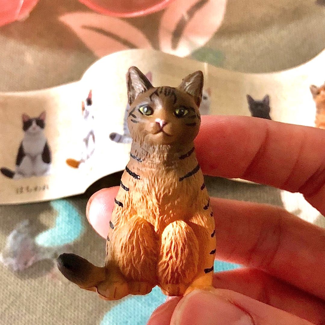 今日は、夫が信じられないものを引き当てて来ました。『しゃがむねこマスコットフィギュア』シークレットのキジトラ…りょふです。先日才知に似てると同シリーズのガチャガチャの景品を持って帰って来たばかりですが、シークレットはキジトラなのか…と内心物凄く気になっていました。 後ろ姿が似てるかなぁ…。りょふはこんな座り方はしないでいつも両手を前に揃えて尻尾を巻いてピシィっと座っていましたが、折角当てたシークレット、我が家に来るべくして来たからには心置きなく可愛がりたいとおもいます。祭壇もちょっと賑やかになったかな。【全部揃ってます!!】しゃがむねこマスコットフィギュア [全7種セット(フルコンプ)]【 ネコポス不可 】【C】