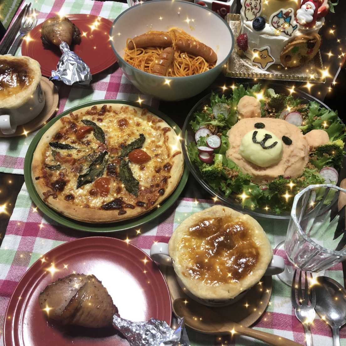 予定していたコンセプトから急遽変更した割には頑張った、と思う、今年のクリスマスディナーです。本日のメニュー・うさぎも浸かる?パイシチュー・ハチワレの『ウインナー1人1本ね!』パスタ・栗まんじゅう風マルゲリータ・鎧さんのクマさんサラダ・ちいかわ達のプリン乗っケーキそんな感じでちいかわーるど、もっと早く思いついて準備していればファミマとコメダ珈琲でコラボメニュー買うだけで済んだのに、とどちらも予約に間に合わず無念でしたが、痛チョコが間に合ったのでヨシとします。買って来たケーキに無理矢理プリンも、うさぎが乗っかってるのをどうしても再現したかったのでまぁまぁ満足。でもピザ生地もチキンも買って来たものなのでズル感否めないかな。そういう意味では鎧さんのクマさんは割と自信作かも知れません。やはり1番好きなキャラにはチカラが入る…?ということで。でもちいかわ、観たり読んだりしているとどのキャラも可愛くていじらしくて好きになっちゃう。危険。[1月上旬より発送予定][新品]ちいかわ なんか小さくてかわいいやつ (1-4巻 最新刊) 全巻セット [入荷予約]
