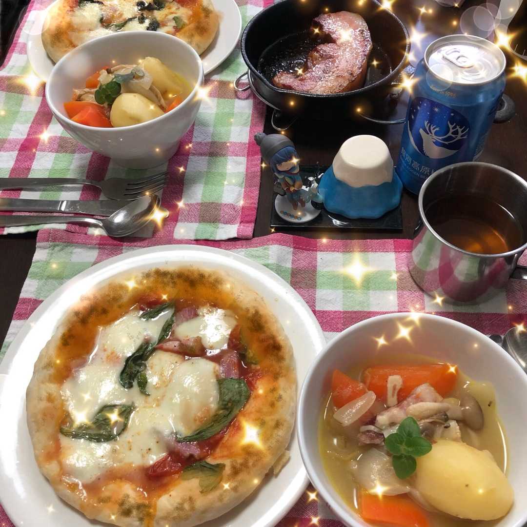 昨日夕飯の支度をしている時に電話が鳴ったと思ったら、移植仲間の1人からで 「今家の玄関前に居るよ❗️お届け物置いておくね❗️」 直後に車のエンジン音がして、慌てて出てみるとドアの前には段ボール箱いっぱいの新玉ねぎと新ジャガが… ビックリして車に乗り込もうとする彼女を引き止めたものの、 「いつもありがとね〜❗️ウチの自家製❗️沢山食べなよ〜❗️」 とあっという間に走り去って行ってしまいました。 彼女のパワーにはいつも圧倒されてしまいます。 ありがとうと手を振って、さて箱を動かそうと手を掛けるも "うっ動かない…" 改めて、彼女のパワーに完敗です。 有難くも貴重な新鮮野菜。 早速そのままメニューに組み込むことにしました。 ジャガイモをハッセルバックポテト風に切り目を入れて、玉ねぎと一緒にオリーブオイルとハーブで蒸焼きに、晒し玉ねぎのサラダに主人のリクエストに応えて桜エビと春キャベツのピザ。 彼女のお陰で一気に春満載の晩餐となりました。 旬の物を新鮮なまま頂けることの喜びよ。 (え❓ダイエット❓聞こえません) 玉ねぎは甘く瑞々しく、ジャガイモはねっとりと黄金色に輝いて、それはそれは美味しい春の味でした。 しかしおNEWのタンブラーに最初に注いだのがコーラで良かったのだろうか。 何にしてもキンキンに冷えてやがるぜ。 本格ピザが味わえる。【石釜ピザオーブン】