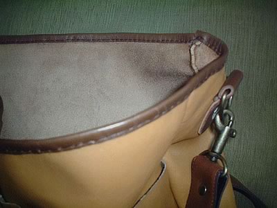 フラップの留めベルトもそれに合わせて斜め取り付け