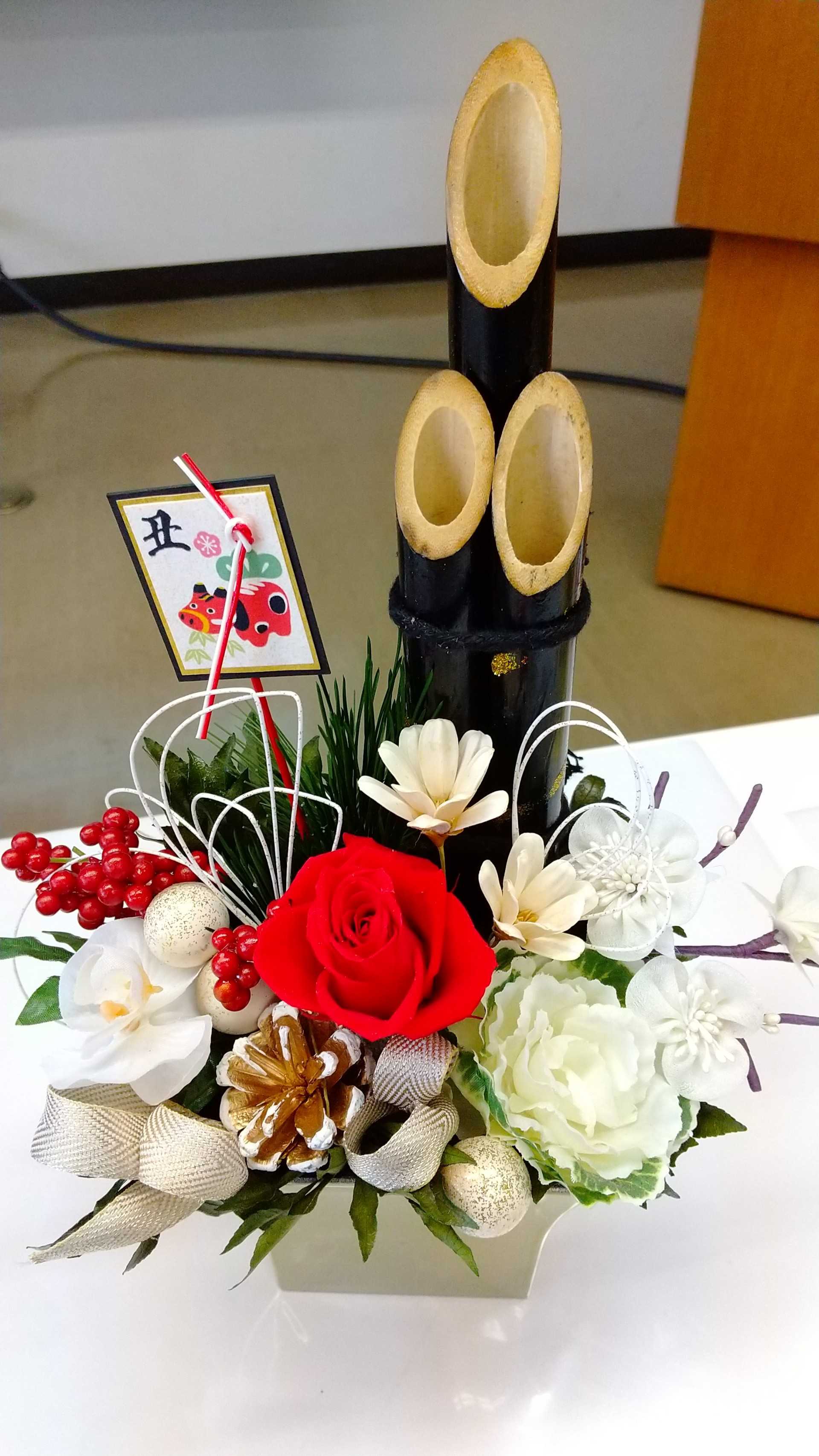 もう1つ、生花のお正月ミニ門松🎍作りを講習会で作りました。