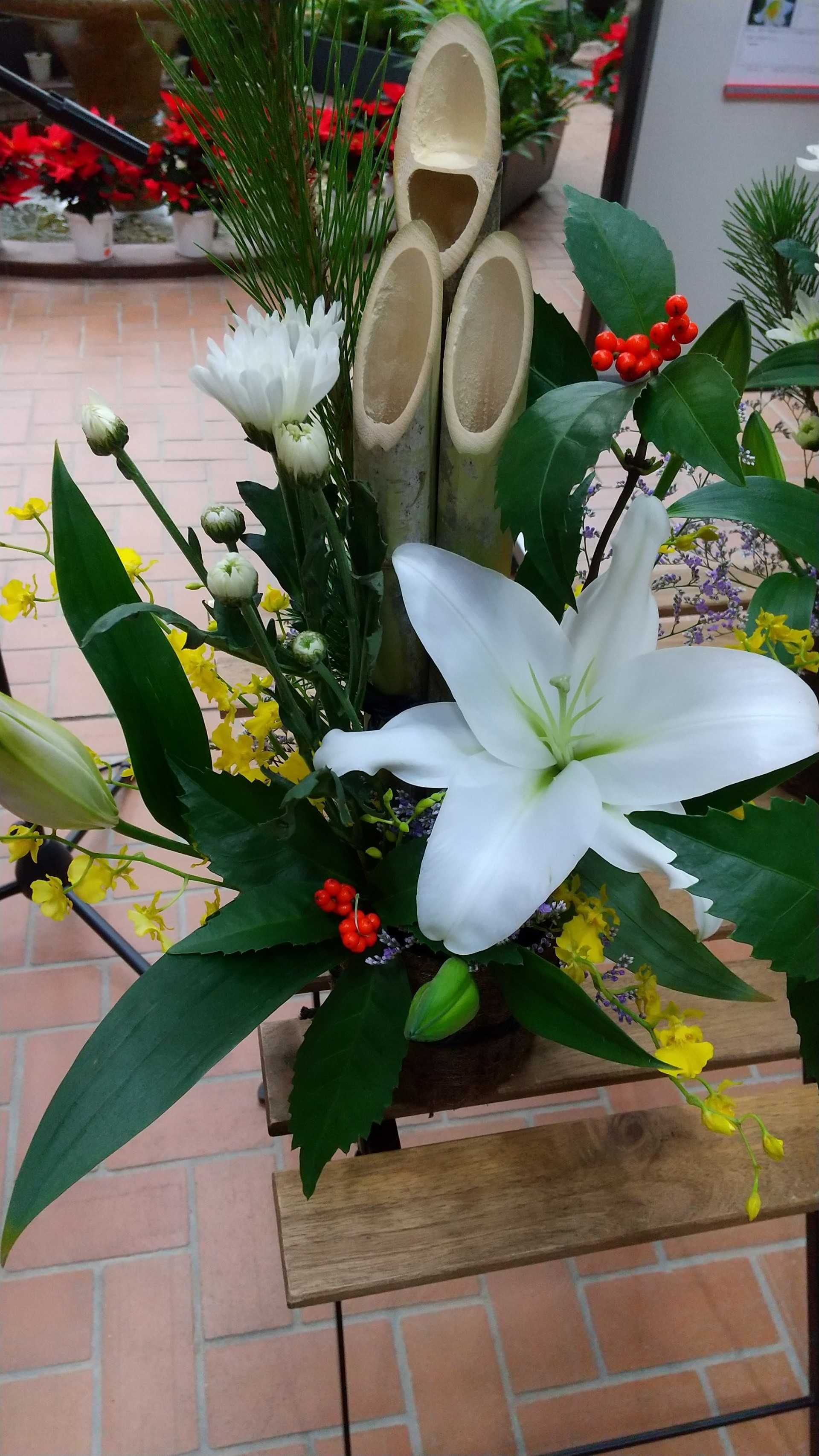 オリエンタルリリーは堅い蕾だったので、なんとかお正月まで持ちそう