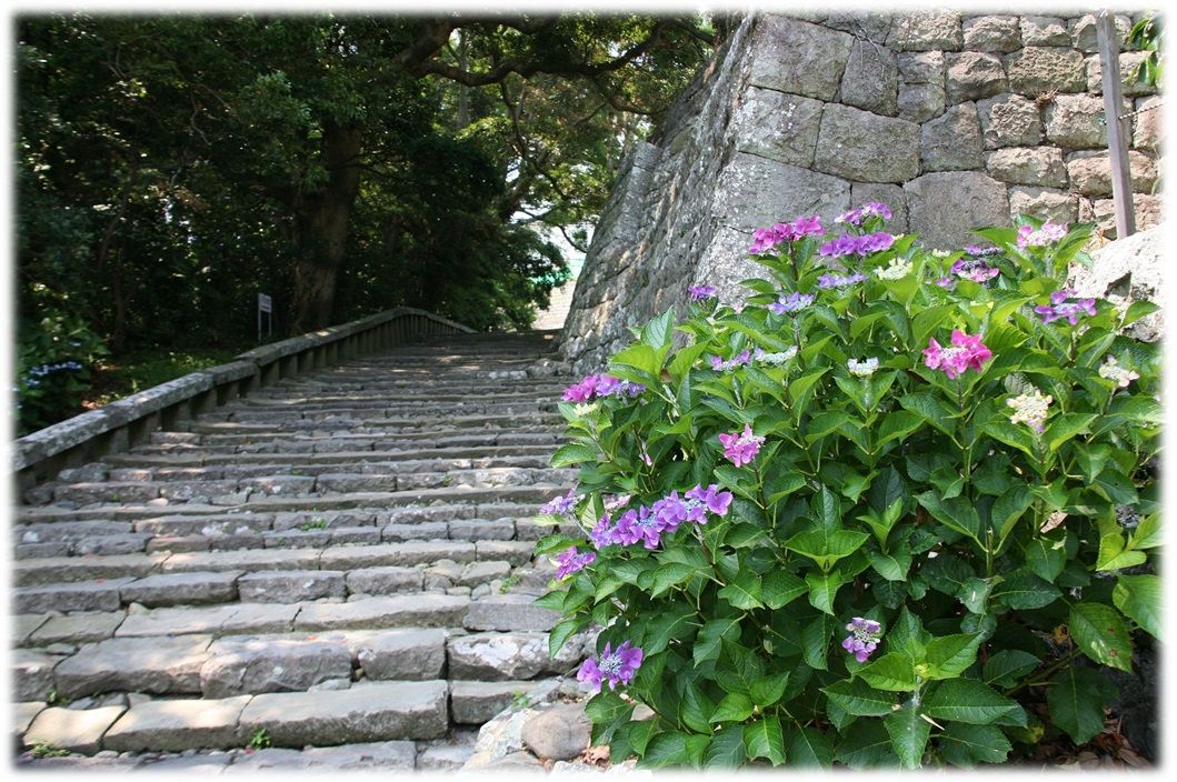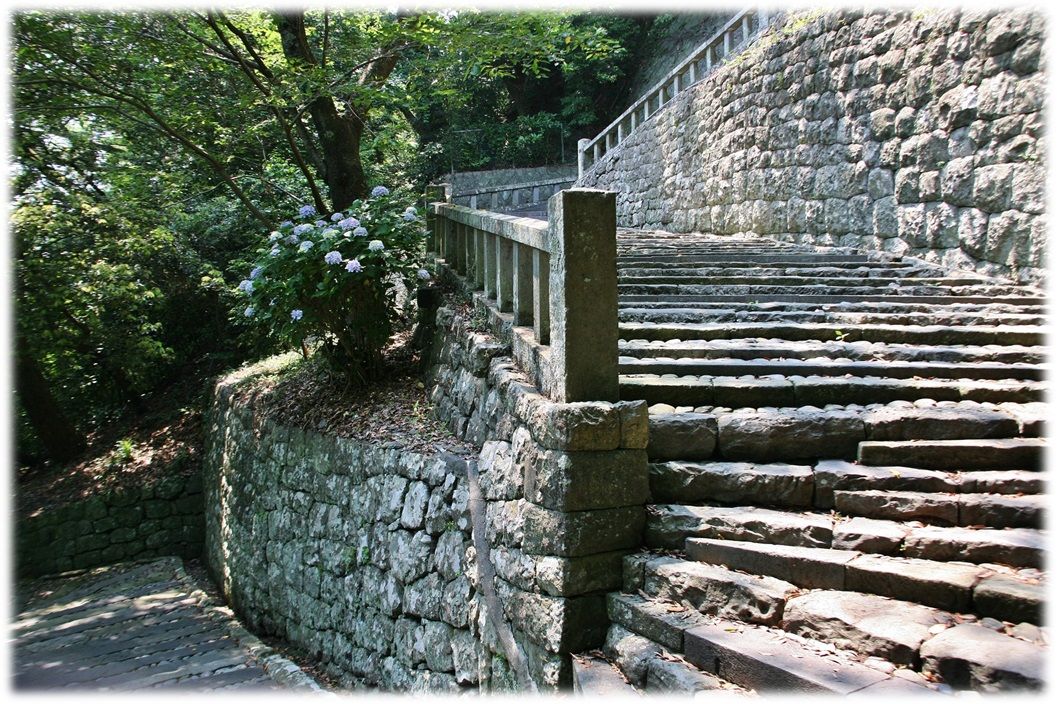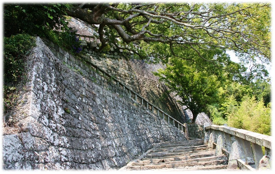 石段もさることながら、この石垣、この斜面によくぞ積み上げたものです