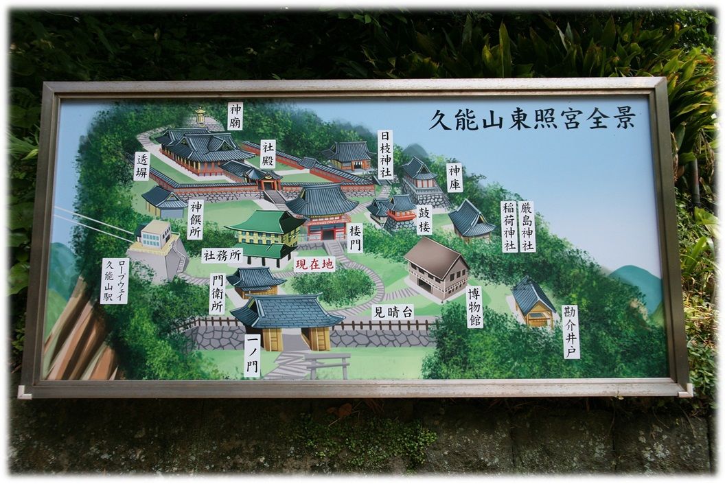 上り始めたすぐ左にこれから目指す久能山東照宮の伽藍の案内板