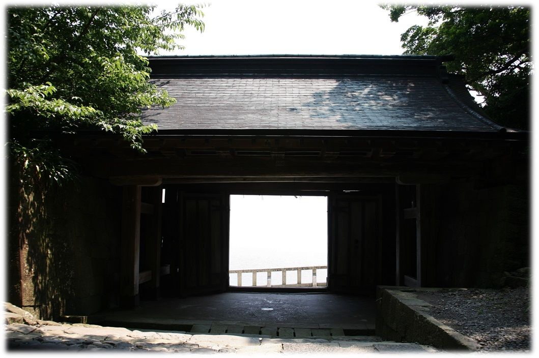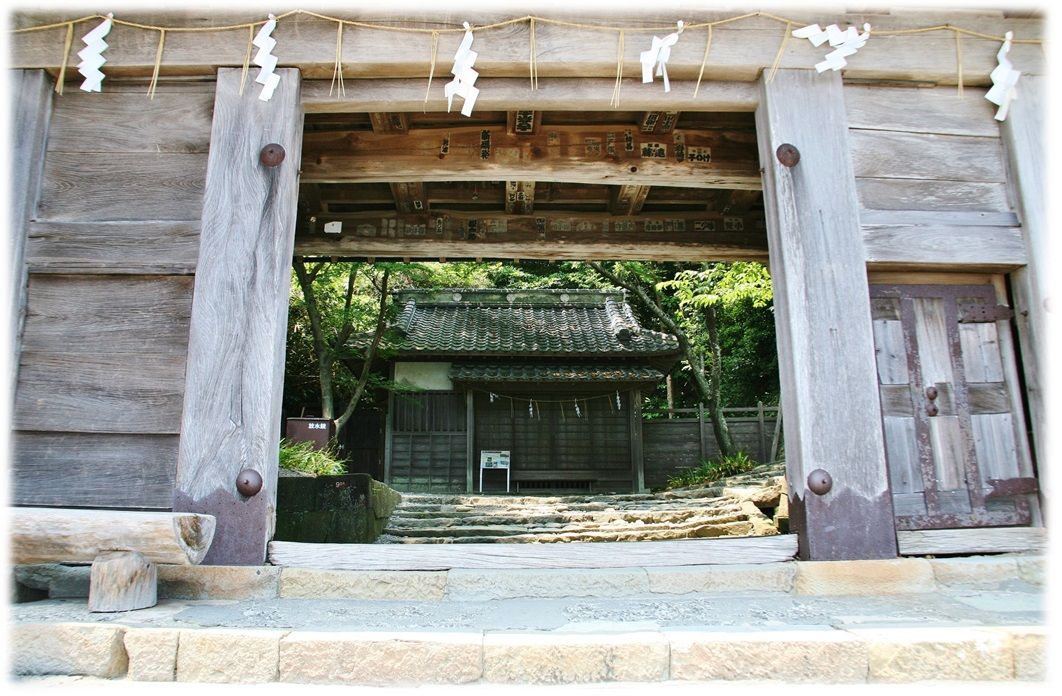 楼門をくぐり、境内から見た楼門裏側全景の眺め